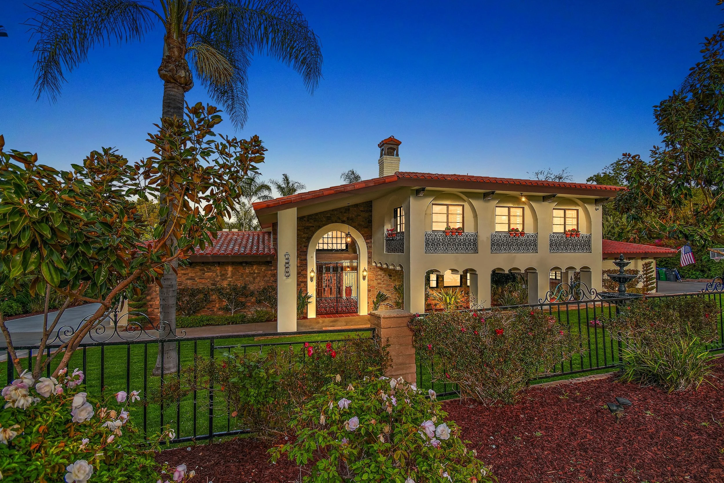 Tucked behind private gates within a tranquil cul-de-sac, this Mediterranean Estate presents a rare opportunity, to own in the community of Orange Park Acres. Set on a lush 1-acre lot, the 6,500 square feet of refined living space is designed to blend timeless architectural elegance with modern resort-style amenities. With 6 generous bedrooms (including a custom executive office) and 7 bathrooms, the home is ideal for multi-generational living. A dramatic porte-cochère introduces the stately façade, guiding guests into a welcoming courtyard that hints at the sophistication within. This chef’s kitchen is the heart of the home — featuring a massive quartz island, Monogram appliances, stone fireplace, and seamless flow into a formal dining room that opens to the backyard Oasis. An expansive family room is anchored by a striking glass-walled rotunda, and offering panoramic views of the lush outdoors. The primary suite is a private retreat, complete with a spa-inspired bath with a jetted soaking tub, oversized stone walk-in shower, and dual custom-designed closets. Rich wood and stone flooring, beamed ceilings, plantation shutters, and designer finishes elevate every corner of the home, reflecting quality. Entertainment and comfort reach new heights in the custom-designed bar and lounge, a true showpiece featuring solid wood cabinetry, quartz countertops, Italian glass mosaic ceiling, Scotsman ice maker, Marvel refrigerator, built-in cigar humidifier, and a custom built stone fireplace. Adjacent, the butler’s pantry enhances functionality with quartz countertops and glass backsplash. A private basement bonus room offers flexible space for a gym, creative studio, or media lounge. Outside, the estate transforms into a five-star resort. A sparkling saltwater pool with Baja shelf is framed by lush landscaping and multiple entertaining areas — including a covered loggia with built-in BBQ, two outdoor TVs, surround sound, a stone fireplace, and a patio for gathering under the stars. The rolling lawn, custom putting green, and a thriving orchard with seasonal fruits deliver a rare blend of elegance and sustainability. Additional highlights include an oversized four-car garage, and a sweeping circular driveway with ample space for RV or boat parking. Set within one of Orange County’s most desirable equestrian-friendly communities, this estate offers a harmonious fusion of privacy, luxury, and everyday comfort. Truly exceptional for the most discerning buyer.
